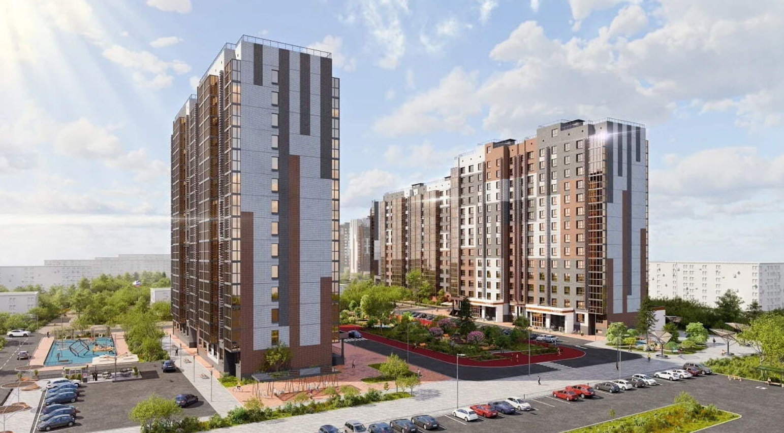 Здесь продумана каждая деталь для комфортной и здоровой жизни. Современная архитектура, квартиры с продуманной планировкой, зоны отдыха, спортивные площадки, безопасные дворы и 3 многоуровневые парковки по 500 мест.