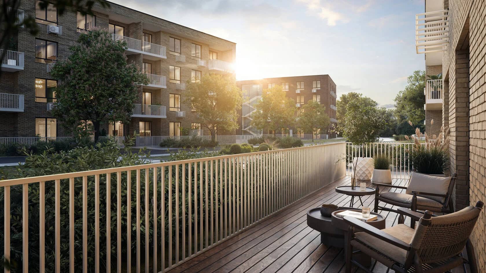 На территории жилого комплекса расположены пешеходный бульвар, протяженностью 1,5км, детские и спортивные площадки, мангальные зоны, зоны отдыха. Пространство включает специально оборудованные велосипедные дорожки и велопарковки.